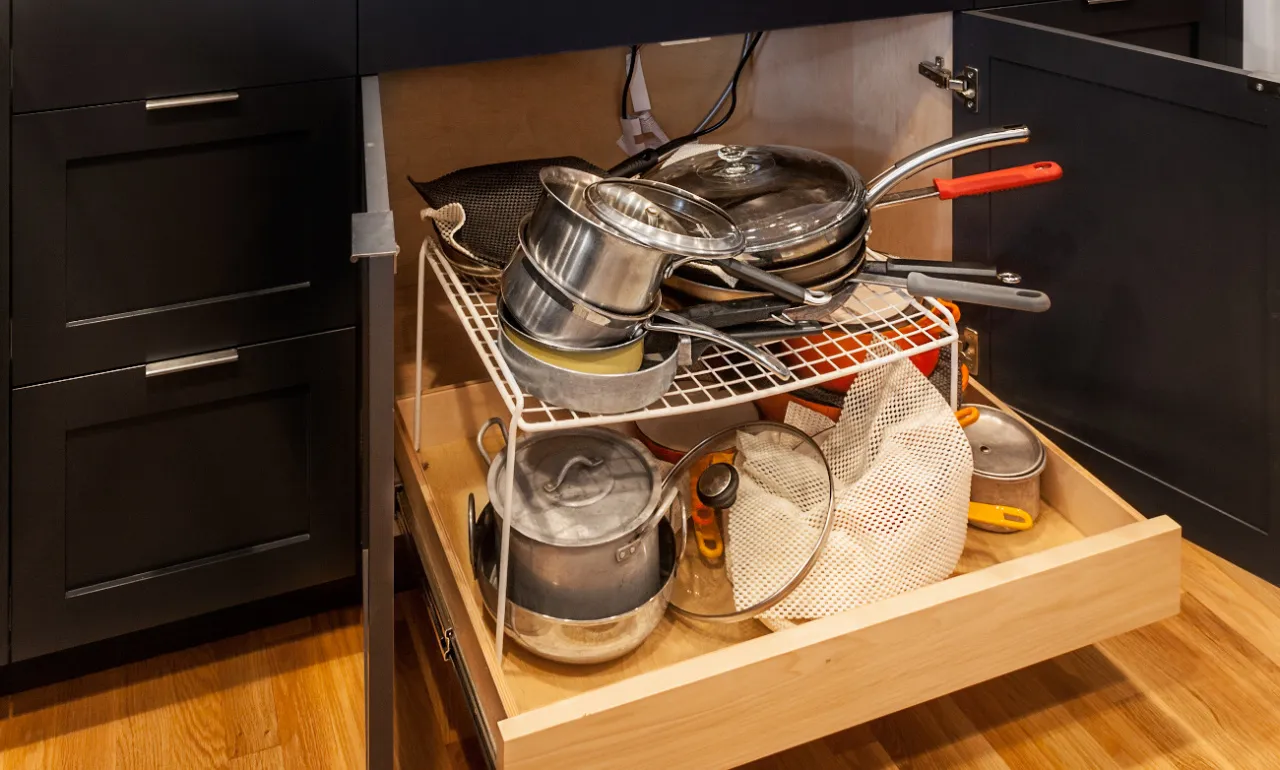 Jak efektywnie układać pokrywki w szafce, aby zaoszczędzić miejsce